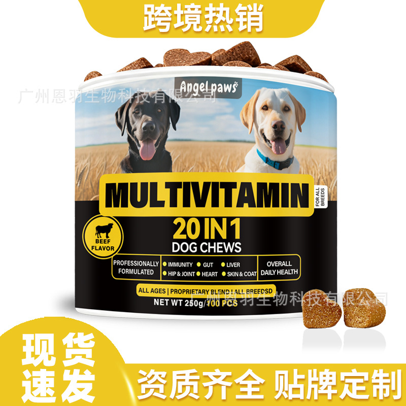 爆款现货跨境宠物狗复合维生素咀嚼片促进狗肠胃调理健康源头工厂