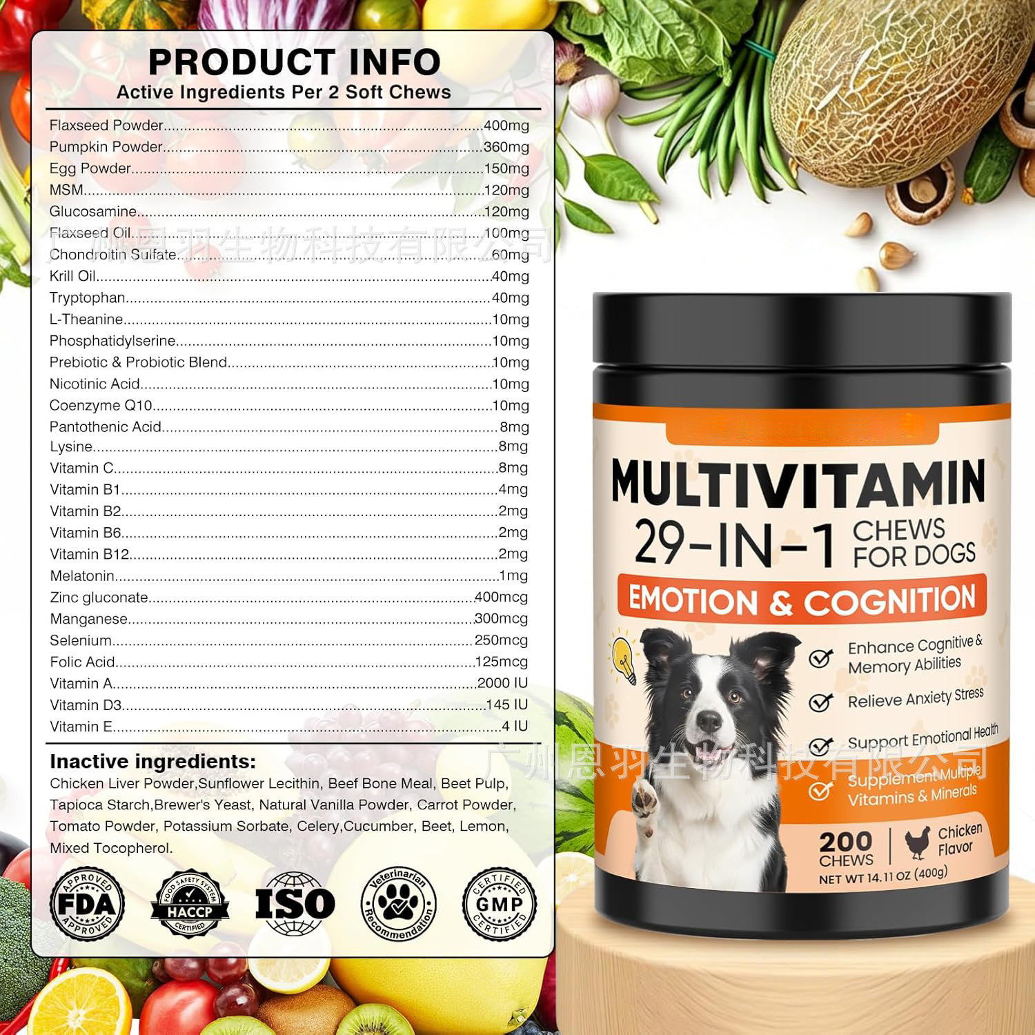 跨境宠物复合维生素咀嚼片提高狗狗认知与记忆能力源头厂家代加工