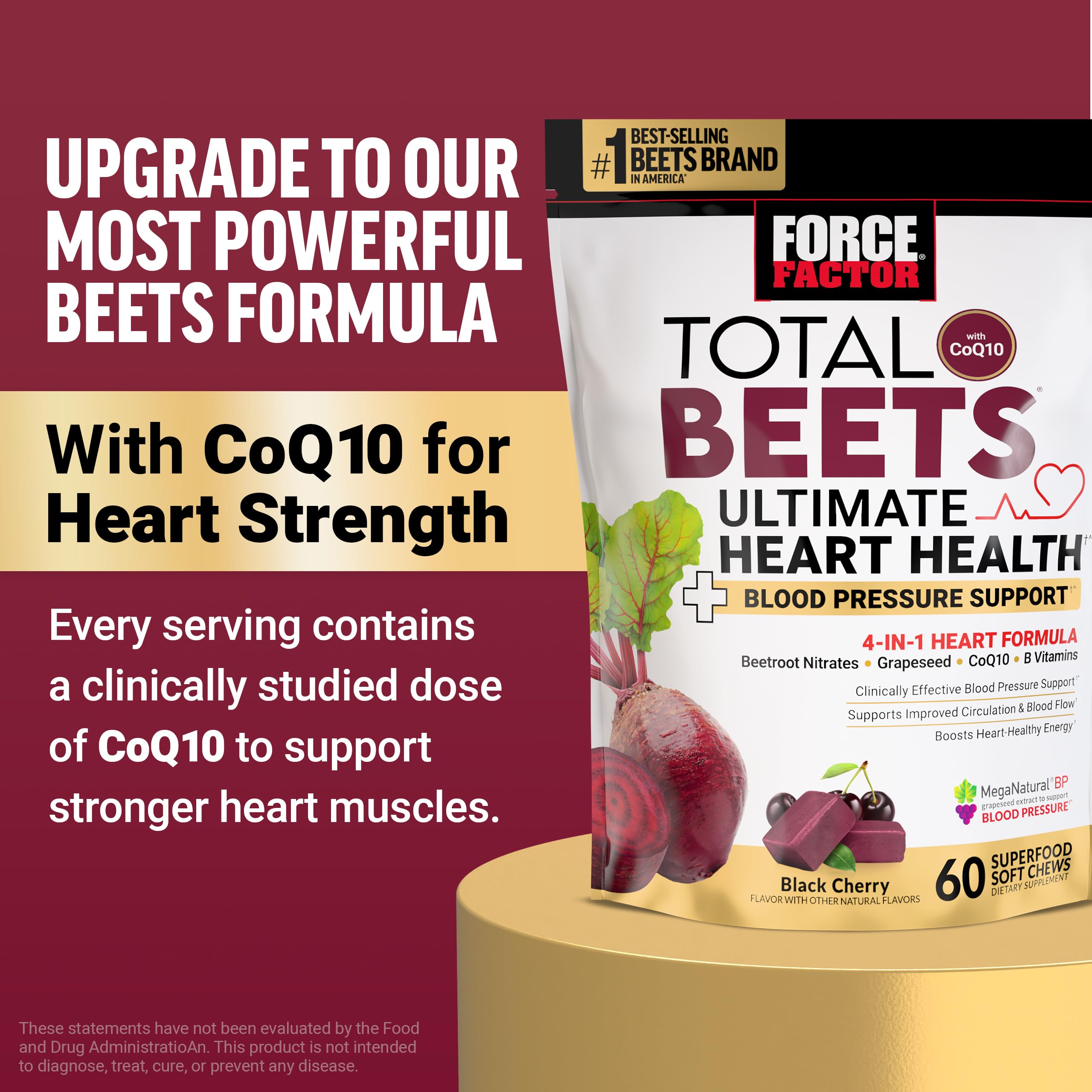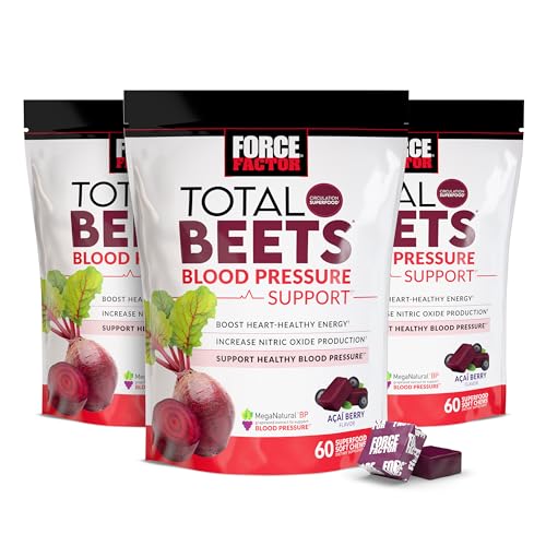 Force Factor Total Beets Blood Pressure Support Supplements with Beet Powder, Great-Tasting Beets Chewables for Heart-Healthy Energy, and Increased Nitric Oxide, 60 Chews