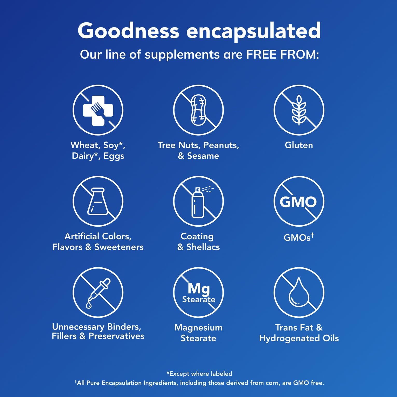 · Pure Difference: Our supplements are made with premium ingredients sourced from trusted suppliers, then manufactured and tested to verify potency and purity; Pure Encapsulations products are free from common allergens, unnecessary binders, fillers, and preservatives, and GMOs