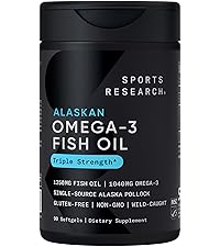 Sports Research® Omega-3 Fish Oil 1250 – Triple Strength Fish Oil Supplement from Wild Alaska Pollock – MSC Certified Sustainable · Non-GMO · Soy Free – 90 Softgel Capsules